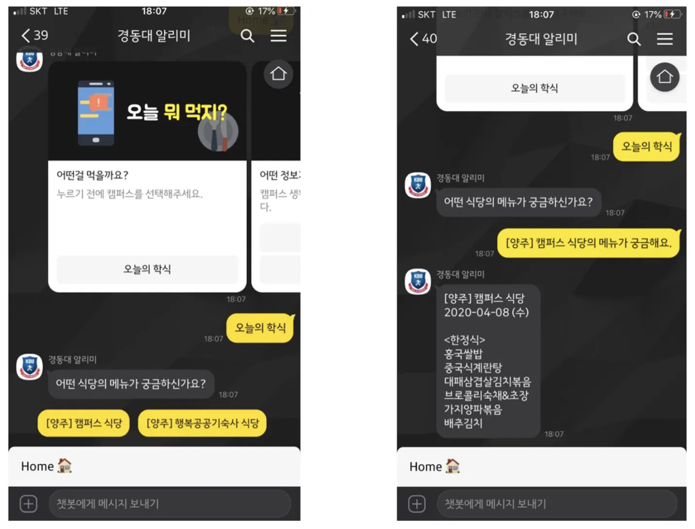 초기에는 위 캠퍼스 정보를 제공해주는 챗봇의 기능 중 하나였습니다.