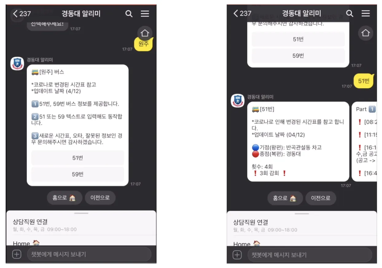 원주 지역의 캠퍼스에서 코로나로 인해 버스 시간이 자주 변경되는 문제가 있었습니다.