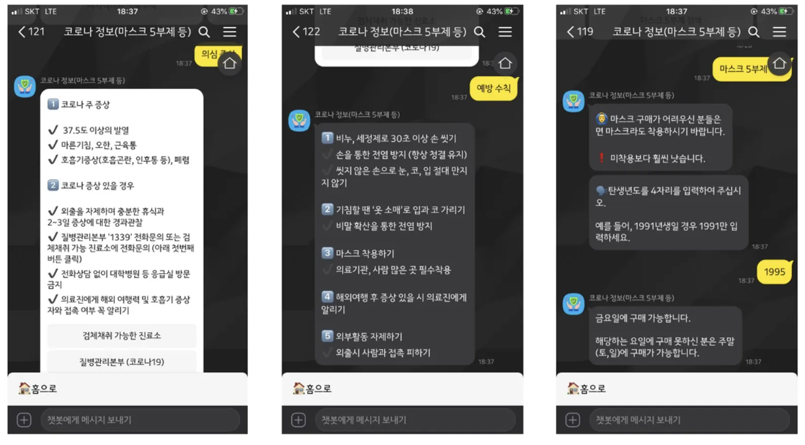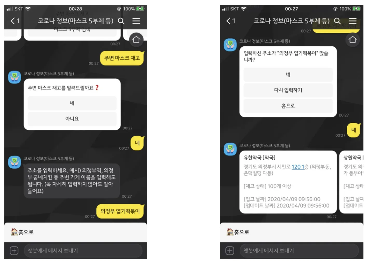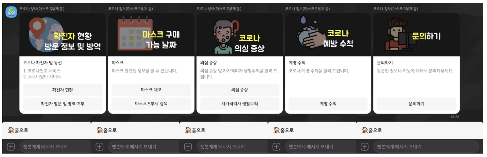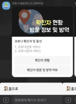 해당 챗봇은 코로나 관련된 정보를 제공해주는 챗봇 입니다.