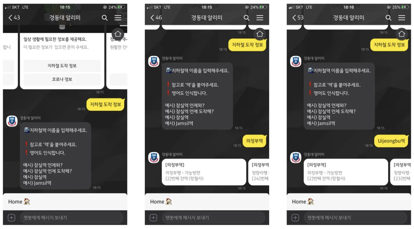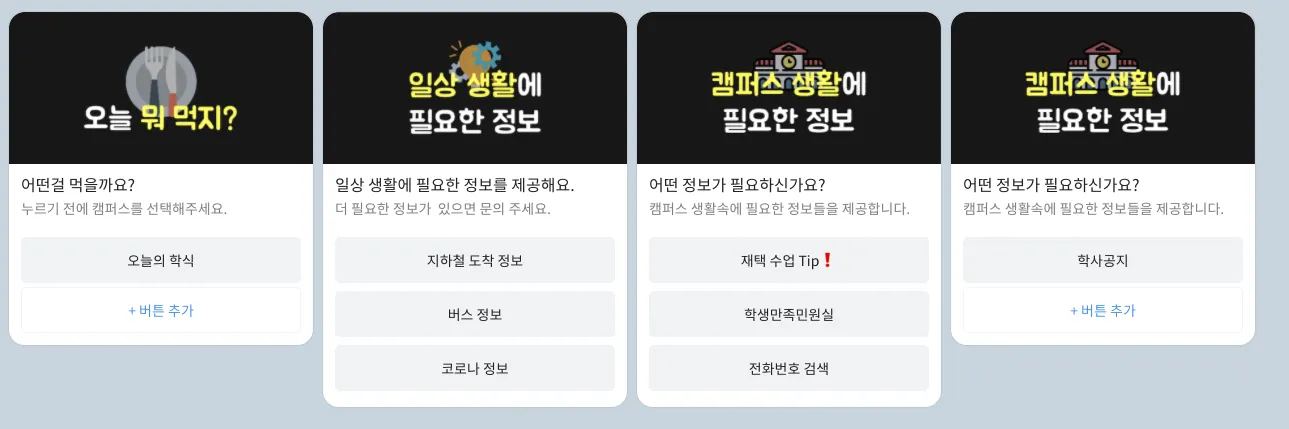 이후로는 테스트 챗봇에 먼저 기능을 추가했고, 작성자분과 지속적으로 연락해서 잘못된 부분이 없는지 검토를 받아, 최대한 한 눈에 보기 쉽게 정보를 제공하고자 하였습니다.