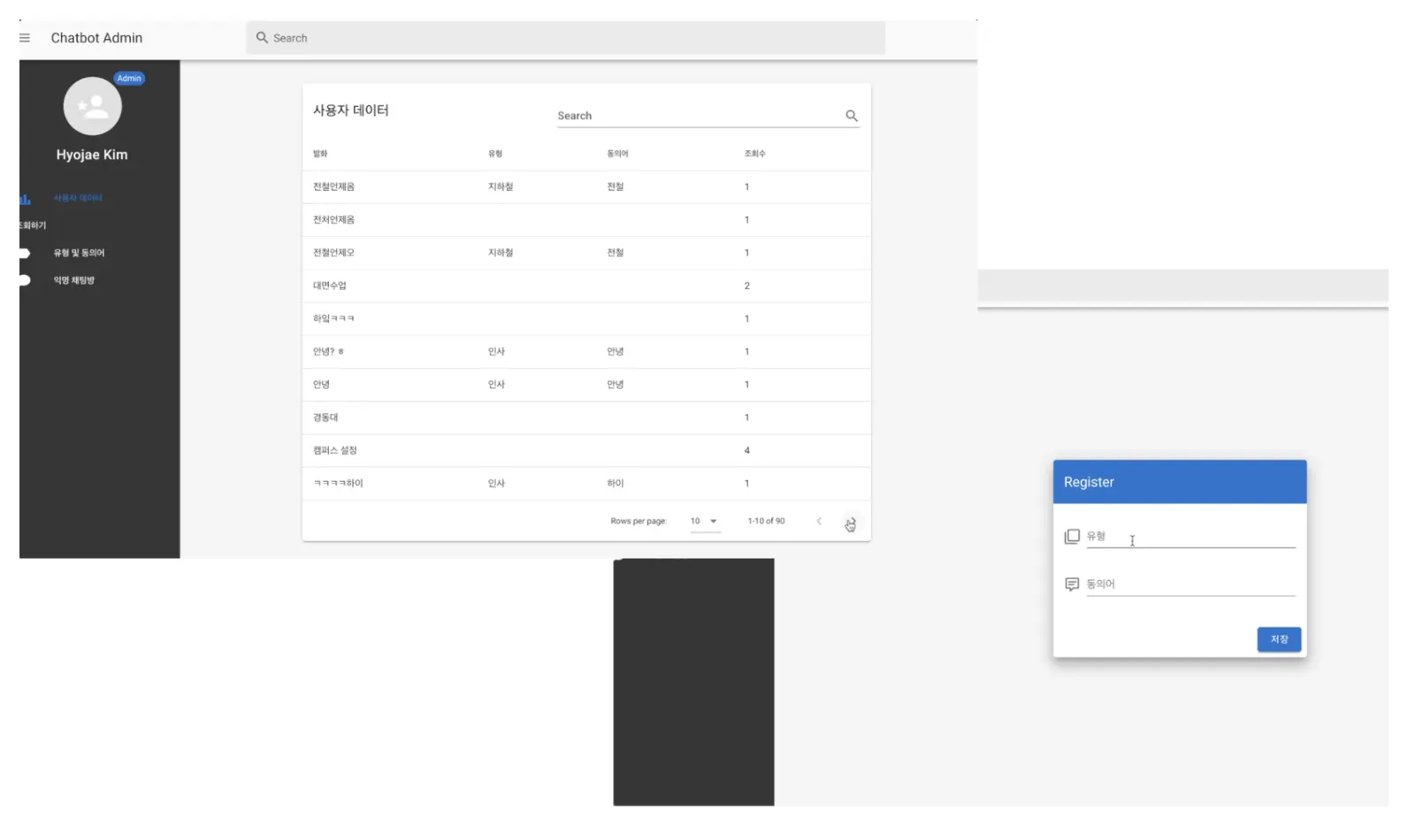 이를 해결하기 위해 챗봇이 알아듣지 못하는 경우 데이터를 분류해서 저장하도록 하였습니다.